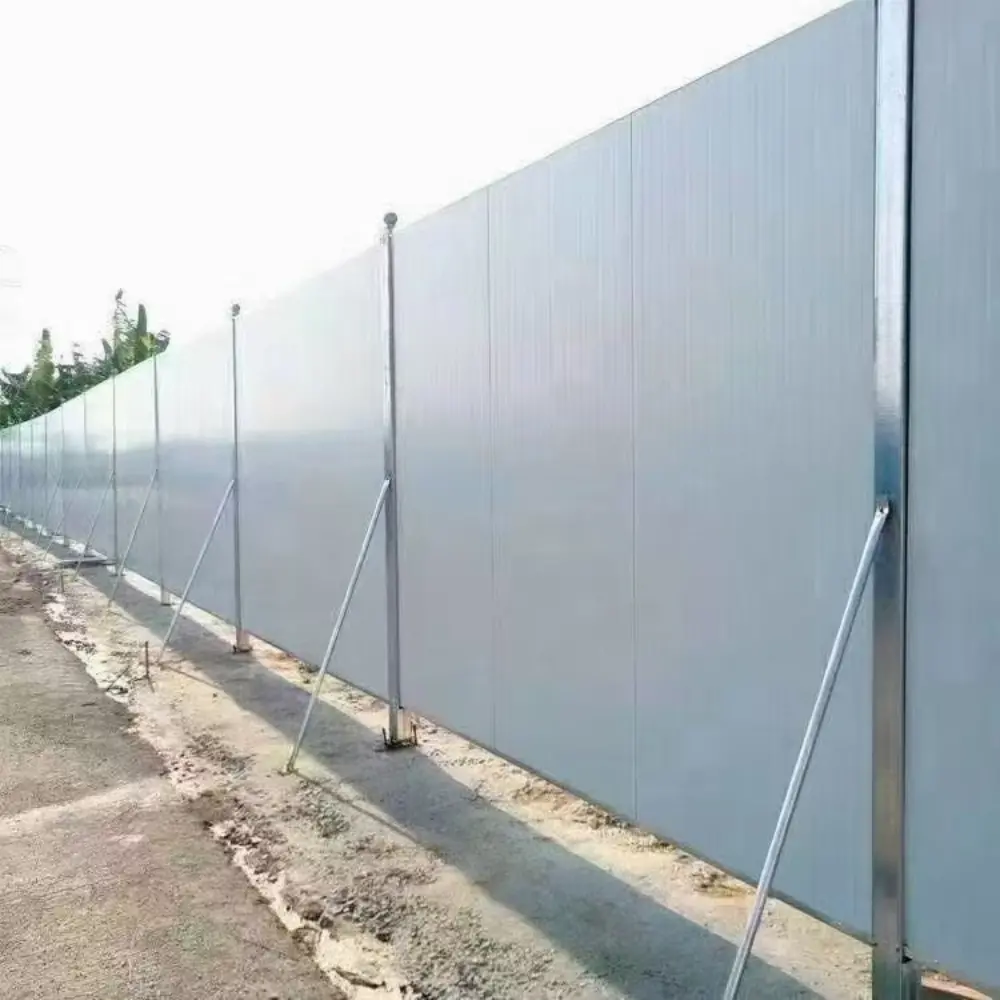 2. Perakitan dan pembongkaran modular yang cepat, memaksimalkan efisiensi konstruksi: Pabrik memproduksi komponen standar seperti kolom, panel baja berwarna, dan balok, yang dibangun di lokasi menggunakan metode kering sepenuhnya, menghilangkan kebutuhan pengelasan dan pengerasan pondasi yang kompleks. Hanya diperlukan penyambungan baut/gesper. Tim yang terdiri dari 2 orang dapat menyelesaikan pembangunan pagar sepanjang 100-200 meter dalam satu hari, dengan efisiensi yang jauh melebihi pagar bata. Pagar dapat dibangun secara bertahap dan dipindahkan secara bersamaan dengan kemajuan konstruksi, beradaptasi dengan kebutuhan konstruksi proyek yang dinamis.